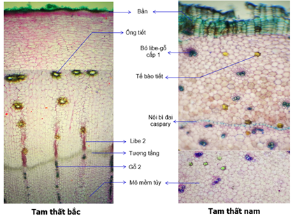3.2. Đặc điểm giải phẫu thực vật của Tam thất bắc và Tam thất nam