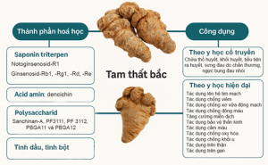 2. Thành phần hóa học và tác dụng, công dụng của Tam thất bắc và Tam thất nam