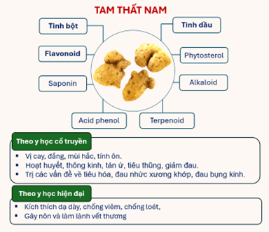 Hình 3. Thành phần hóa học và công dụng của Tam thất nam [3], [11]